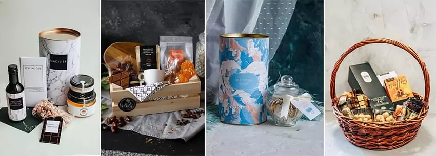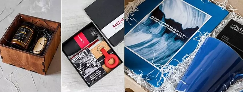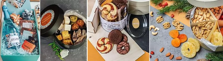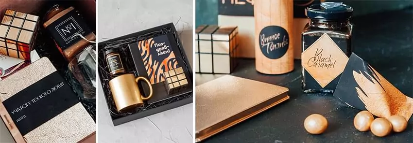 Шикарные продуктовые наборы всегда считались хорошим подарком. Составить такой набор можно самостоятельно, но ещё лучше обратиться в специализированные подарочные магазины, где могут предложить гастрономические наборы, стилизованные под конкретную специальность — строитель, бухгалтер и так далее.